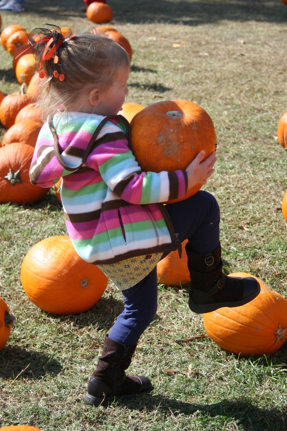 Oma and Opa came to visit the girls over Halloween weekend. We took the girls to Hill Ridge Farms to see the animals, go on a train and hayride and pick out pumpkins. They had a blast. Natalie loved riding on the little horses, going in the corn pit, and down the huge slide. Claire's favorite was watching all the animals. Every time you picked her up to go another section, she got so upset and started crying. She seems to really like being near animals. Natalie tried picking up a bunch of the pumpkins and putting the stickers that are on the pumpkins on Claire's head!